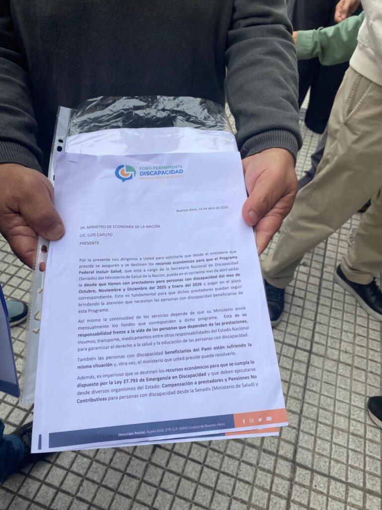 El documento presentado advierte sobre la necesidad de saldar deudas con prestadores, asegurar el financiamiento del Programa Incluir Salud y dar cumplimiento a la Ley de Emergencia en Discapacidad, entre otras demandas fundamentales para la vida y los derechos de las personas con discapacidad.